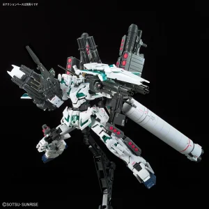 The Real Grade Full Armor Unicorn Gundam is armed to the teeth with its Beam Magnum, two Hyper Bazookas, Beam Javelin, and much more, including the pair of massive propellant tanks attached to its backpack! It snaps together for ease of assembly, and is molded in color so painting isn’t necessary, although you could certainly add some paintwork to make it really stand out on your shelf. Order yours today!