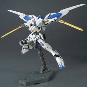Based on the Mobile Suit Gundam Iron-Blooded Orphans anime, this Gundam Bael model kit is in the 1/144 scale and becomes a fully articulated figure once built.