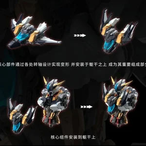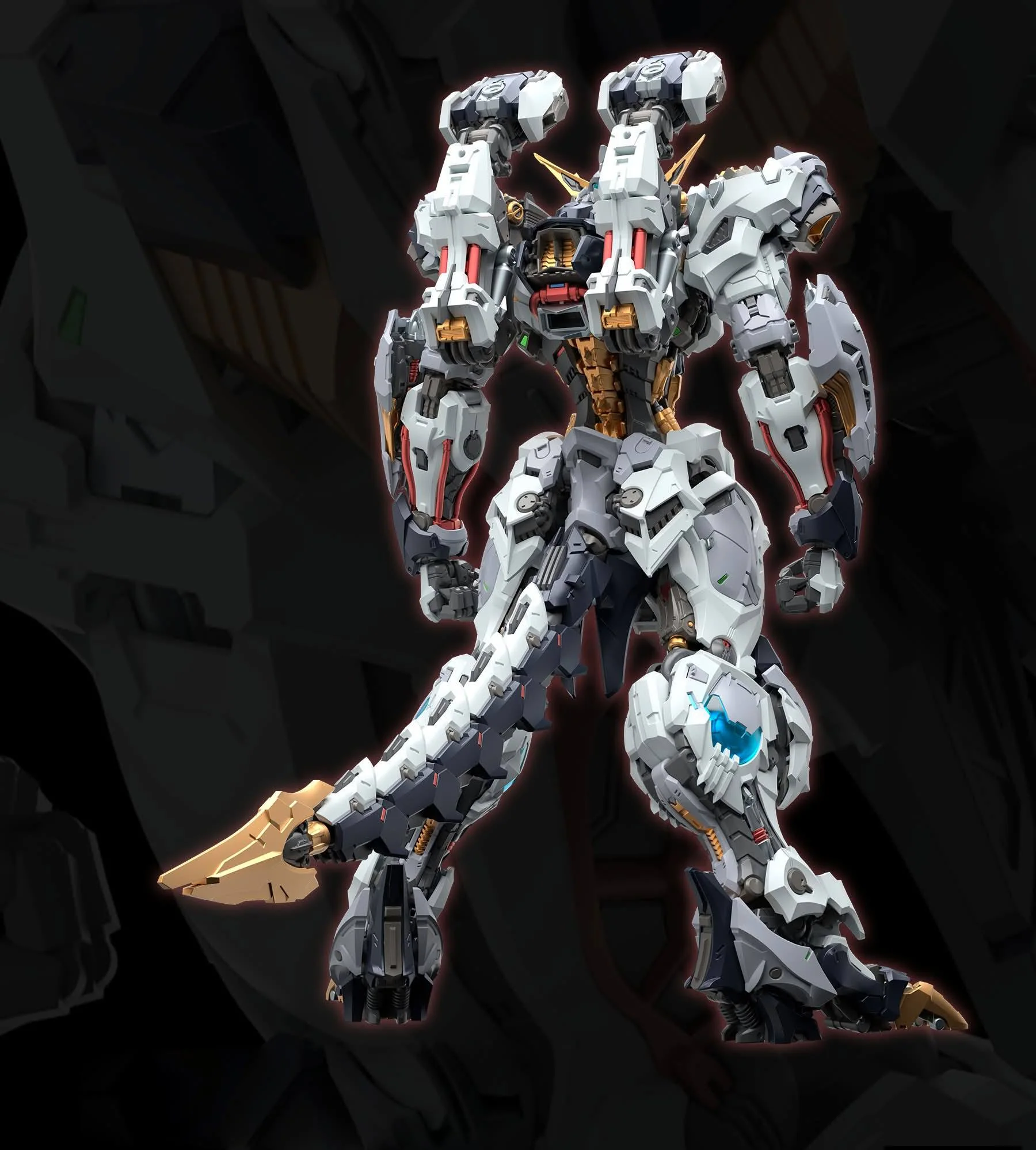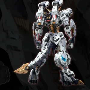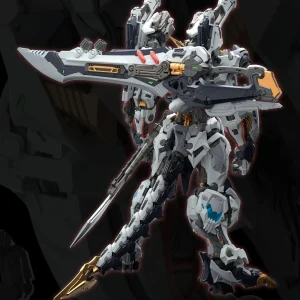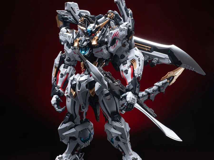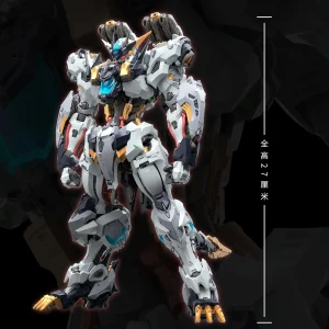 The model kit features an imposing humanoid mecha design with heavy armor layering and aggressive proportions. Once completed, the model kit stands over 10 inches tall!