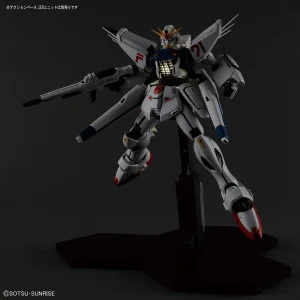 The F91’s face open gimmick has been implemented and can split open to the sides or displayed with a solid piece. Shoulder fins and leg thrusters have a deployment mechanism allowing for various angle adjustments.