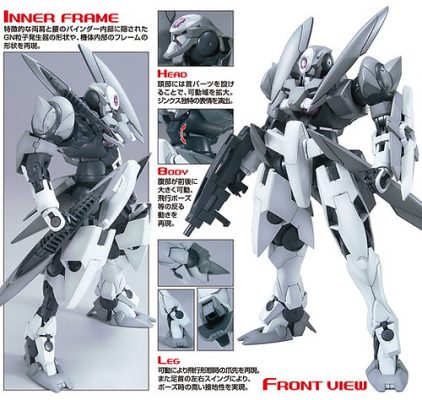 Based on the Mobile Suit Gundam 00 series, the GN-X model kit is in 1/100 scale and becomes a fully articulated figure once complete. The GN-X features an openable cockpit and can be armed with the included GN beam rifle, GN long barrel beam rifle, GN beam saber, and GN shield. Also included with the kit are  pilot figures of Sergei Smirnov and Soma Peries.