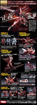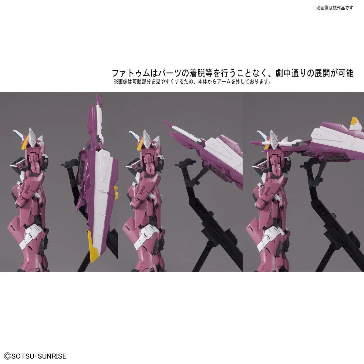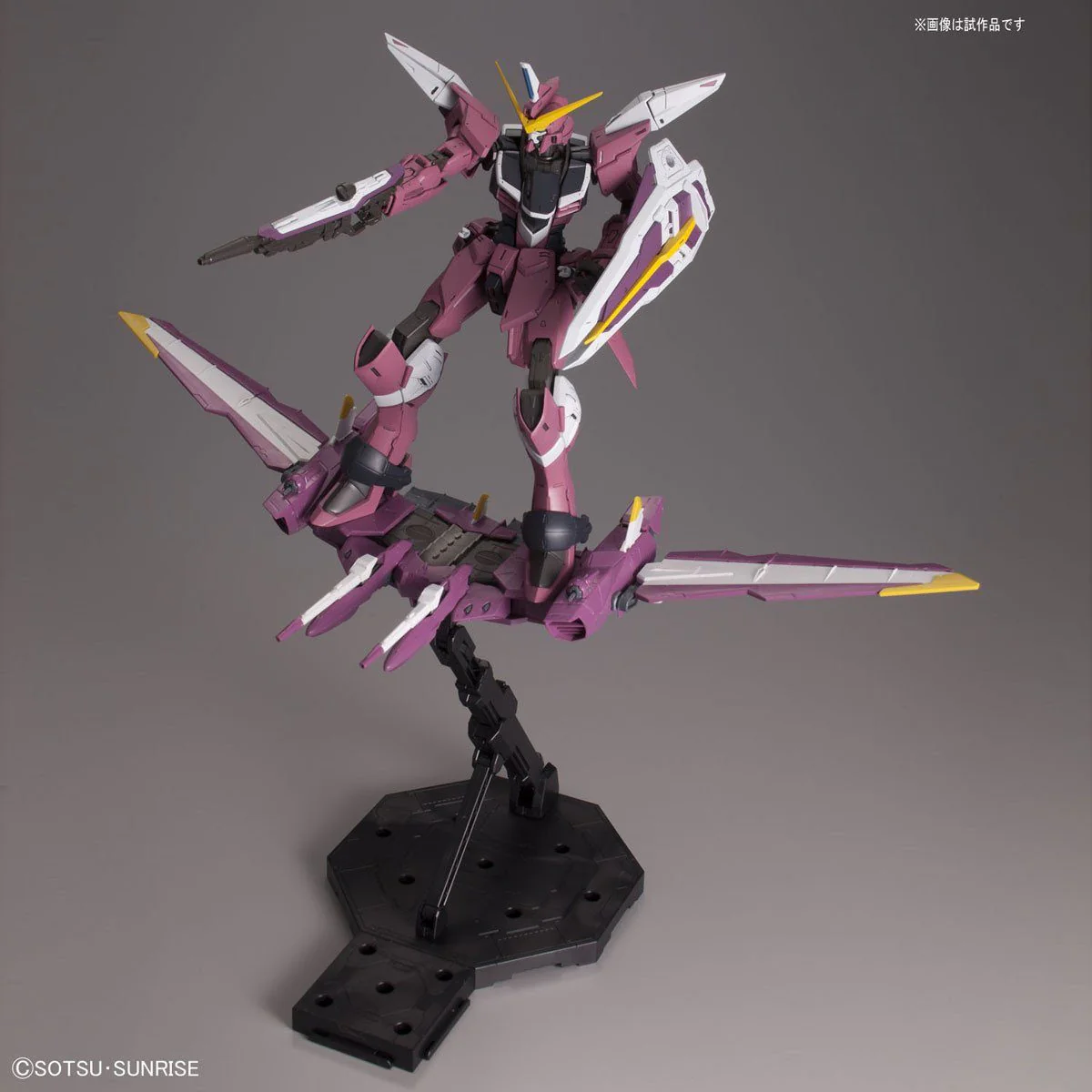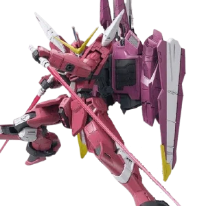From the TV series “Gundam Seed”, the Justice Gundam has finally been made into a Master Grade kit! Justice Gundam’s multipurpose sublifter with movable beam cannons and machine cannons, the Fatum-00, can be configured into different flight positions on back and also as a flying mount for it to stand on. Pair with MG Freedom 2.0 and MG Providence to complete ZAFT’s Gundam Seed lineup! Includes two beam boomerangs that be stored in shoulders, two beam saber, beam rifle, and Laminate anti beam shield.