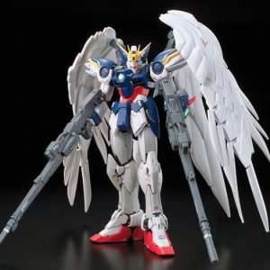 The Wing Gundam Zero Endless Waltz model kit joins the 1/144 scale Real Grade lineup and becomes a fully articulated figure when completed. This version of the Wing Gundam Zero EW is built on a “Zero Frame,” which allows for amazing posability. Some of the feathers on the model’s wings are also poseable thanks to unique joints. The model comes with two buster rifles which can be joined to form one giant weapon.